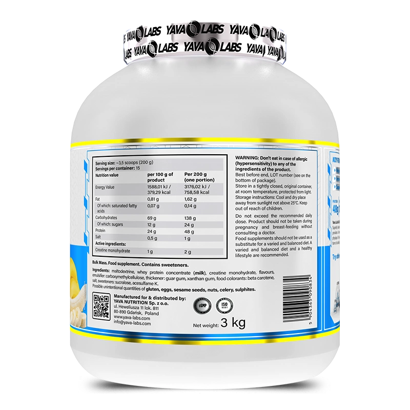 DESCRIPTION : Le Yava Labs Bulk Mass est la solution ultime pour ceux qui ont des difficultés à prendre du poids ou qui souhaitent un développement musculaire contrôlé.